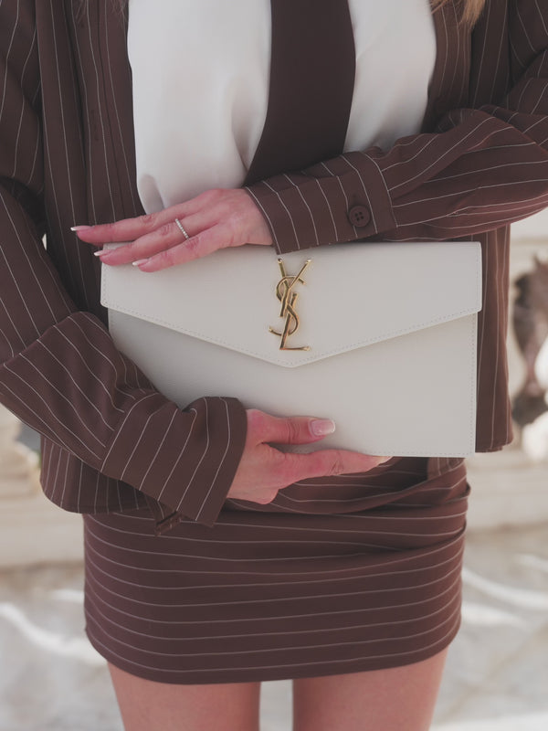 Envelope Medium in pelle trapuntata Grain de Peudre