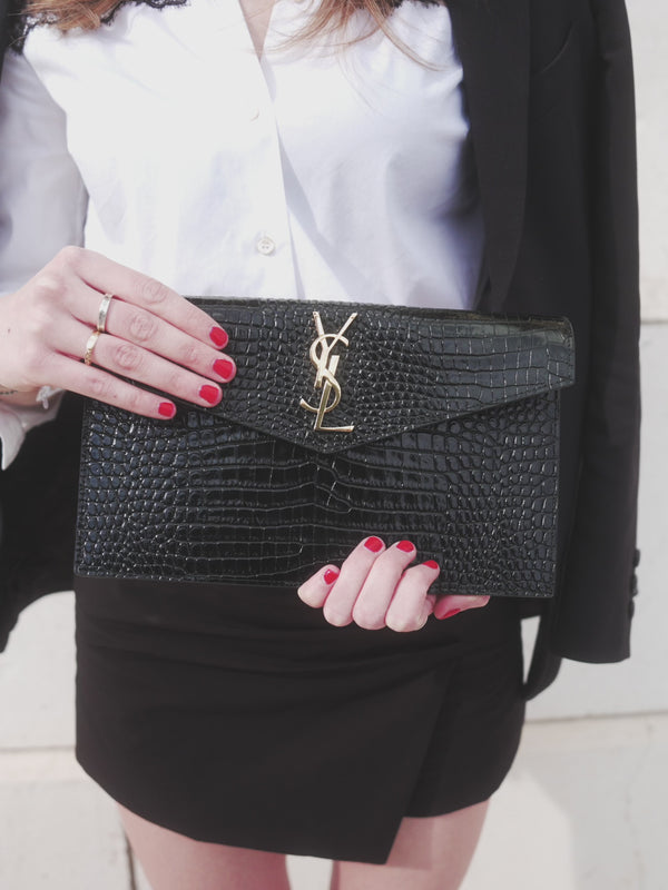 Pochette Uptown Shiny Embossed Crocodile Leather "Gold"