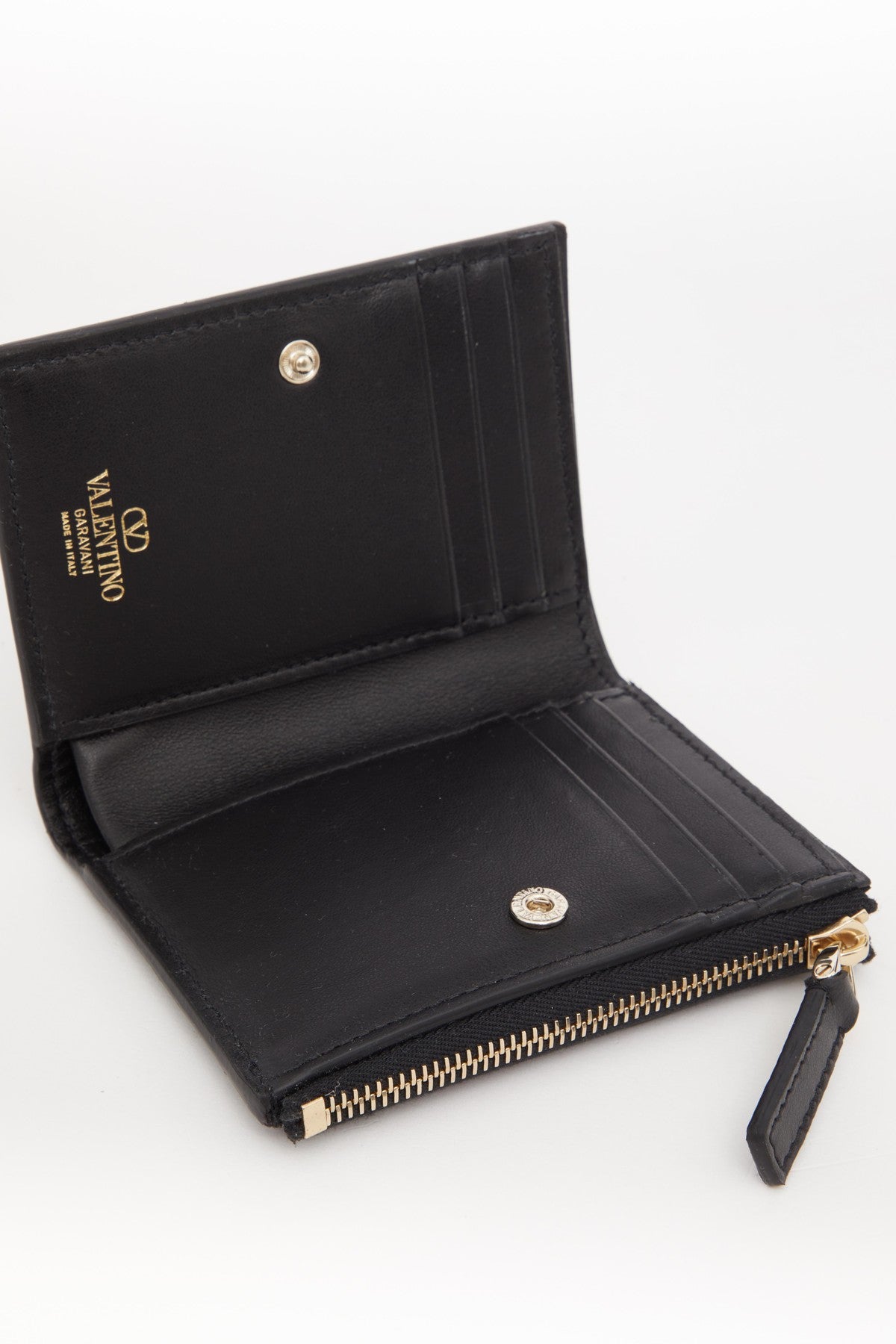 - Sei vani portacarte, due tasche piatte, una tasca per banconote e una tasca portamonete con zip
