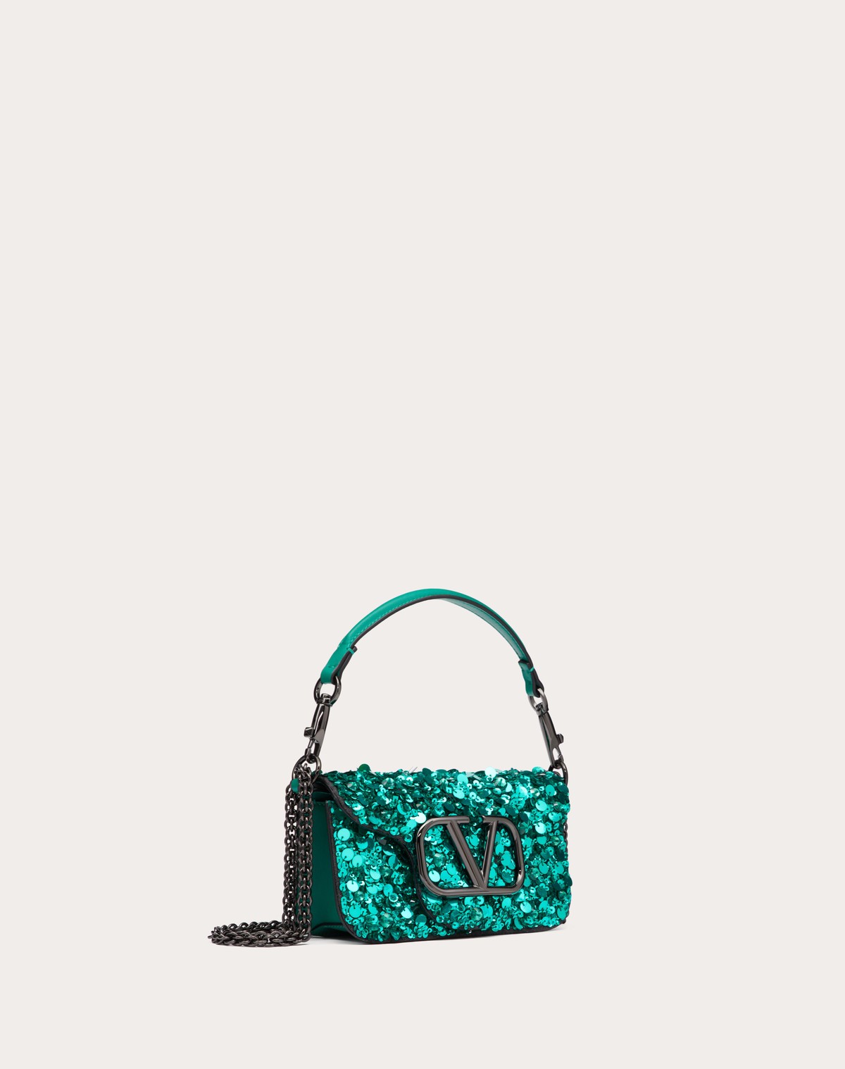 Borsa piccola a spalla Locò Valentino Garavani con ricamo effetto tridimensionale, riporti in pelle ed elemento VLogo Signature. La borsa può essere indossata a spalla/cross-body o a mano grazie al manico amovibile e alla catena scorrevole e amovibile.