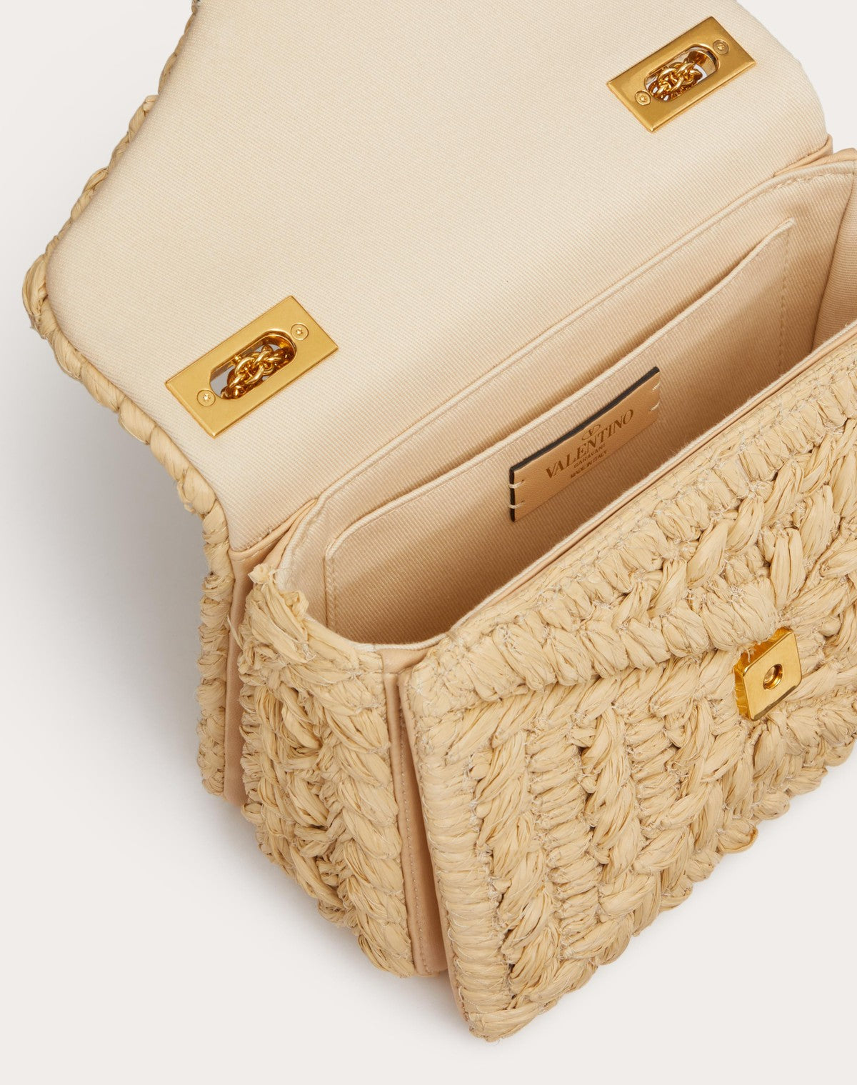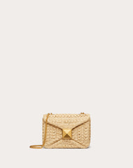 Borsa con catena One Stud Valentino Garavani con intreccio di rafia sintetica. Chiusura frontale dettagliata da maxi borchia.
