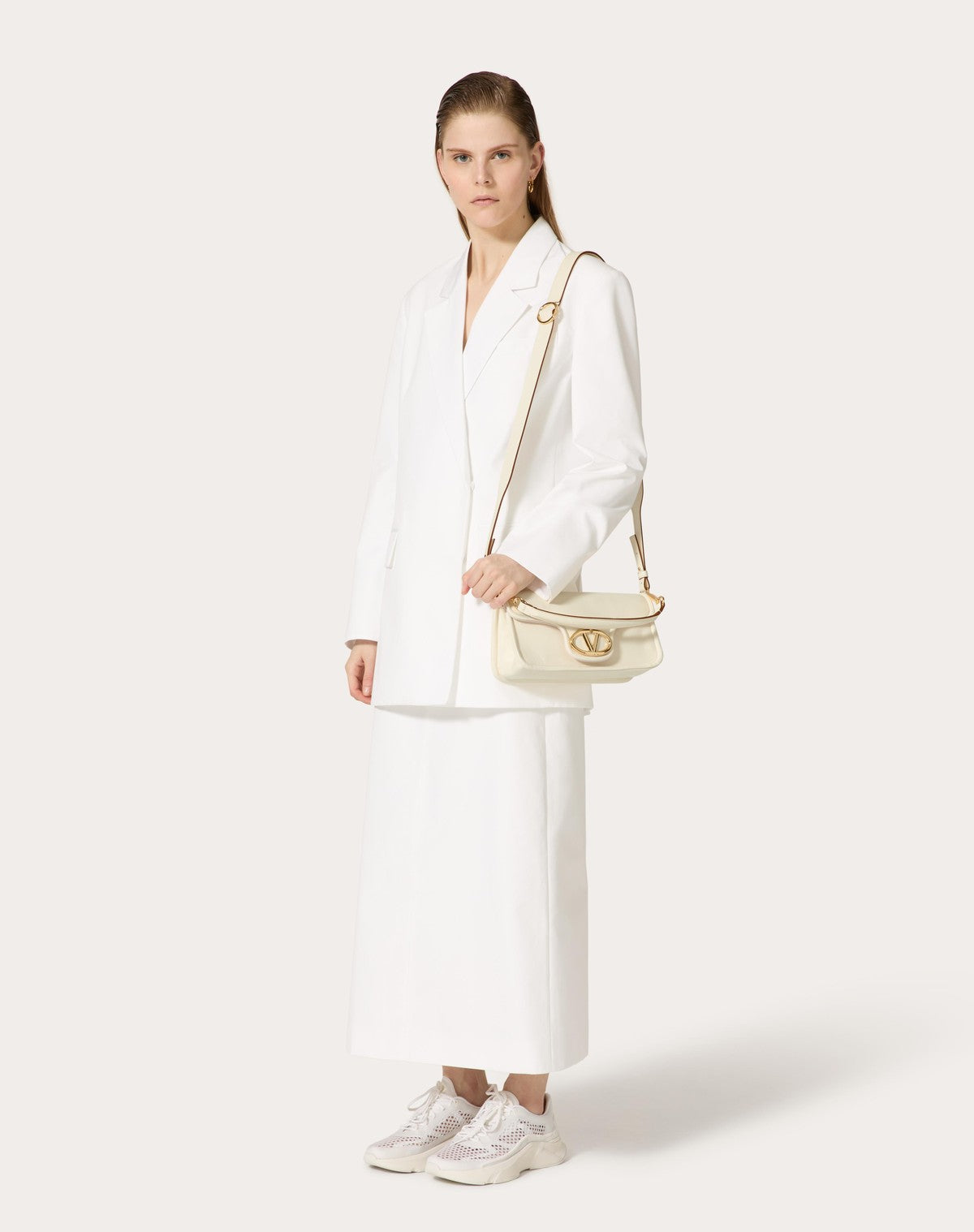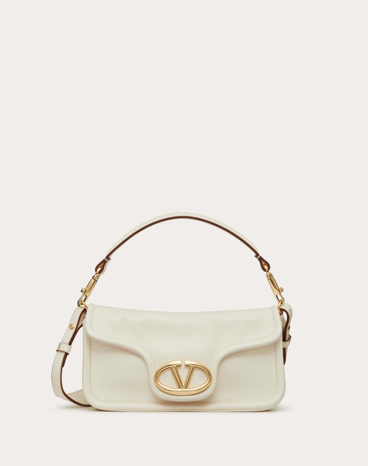Borsa a spalla media Valentino Garavani VLogo 1960 in nappa con elemento VLogo Signature metallico. La borsa può essere indossata a spalla/cross-body o a mano grazie al manico e alla tracolla in pelle amovibile.