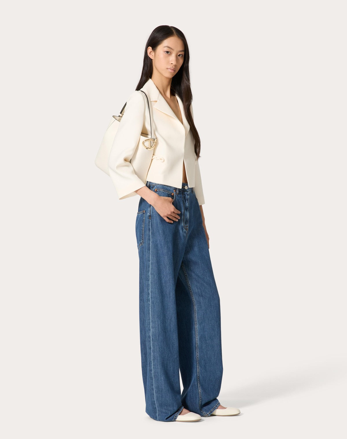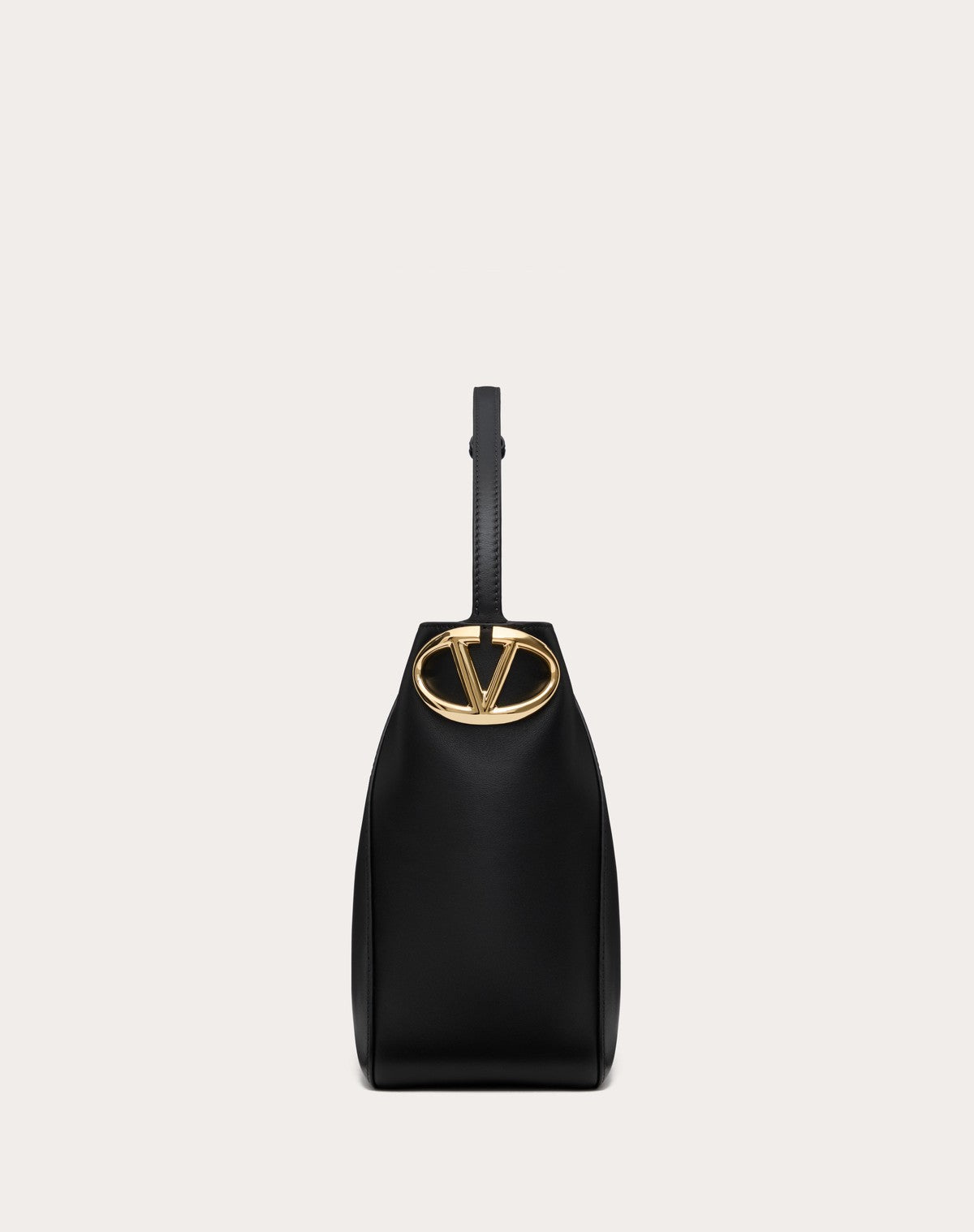 Borsa a secchiello Valentino Garavani VLogo Side realizzata in vitello nappato e dettagliata sul fianco dall'elemento Vlogo Signature metallico leggermente sagomato. La borsa può essere comodamente indossata a spalla grazie al manico in pelle regolabile.