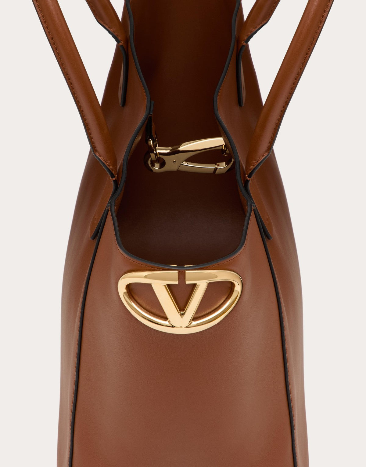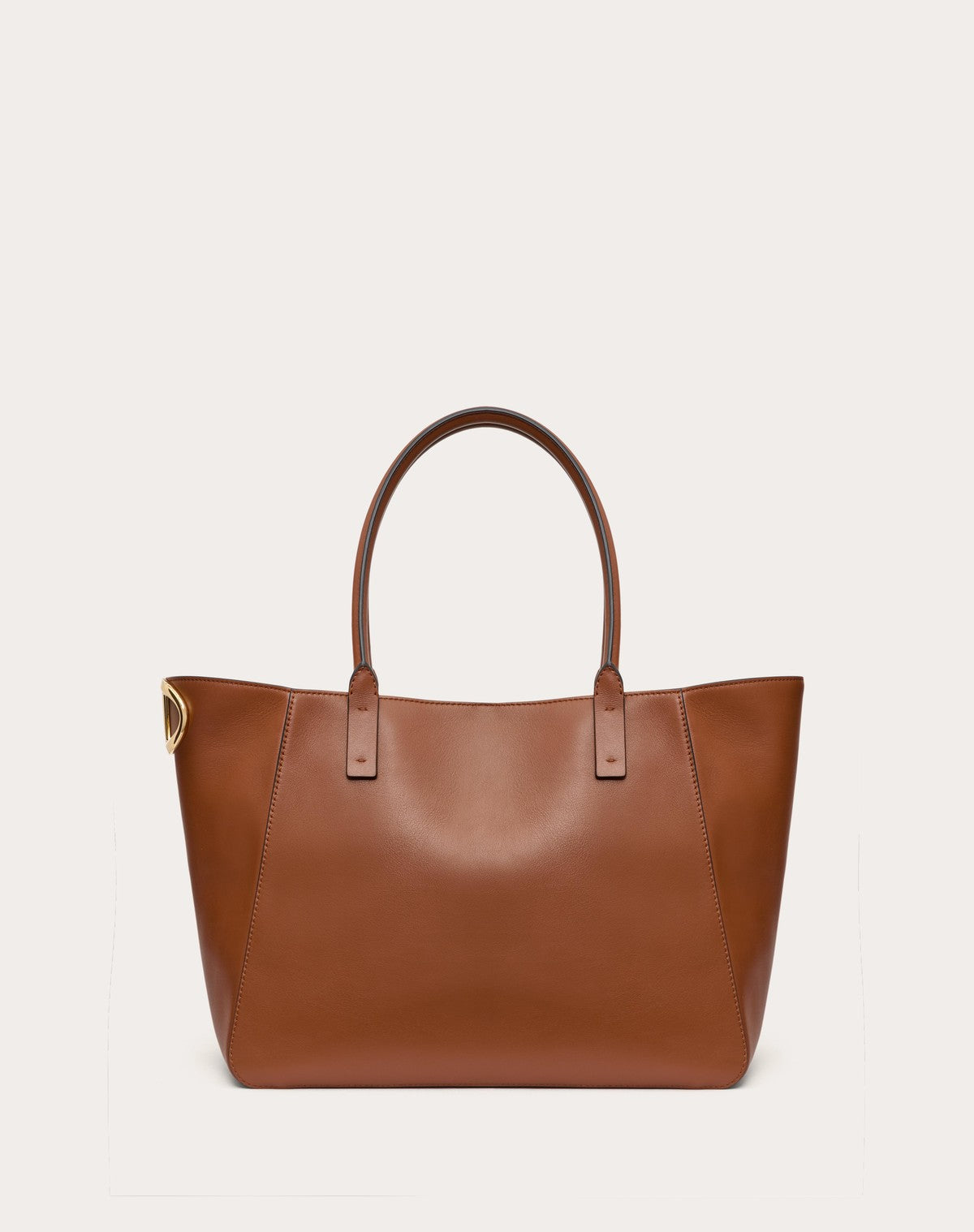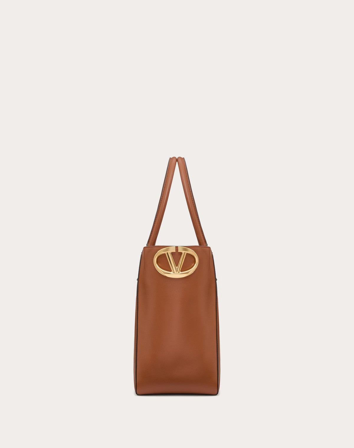 Borsa shopping Valentino Garavani VLogo Side realizzata in vitello nappato e dettagliata sul fianco dall'elemento Vlogo Signature metallico leggermente sagomato. La borsa può essere comodamente indossata a spalla grazie ai doppi manici in pelle.