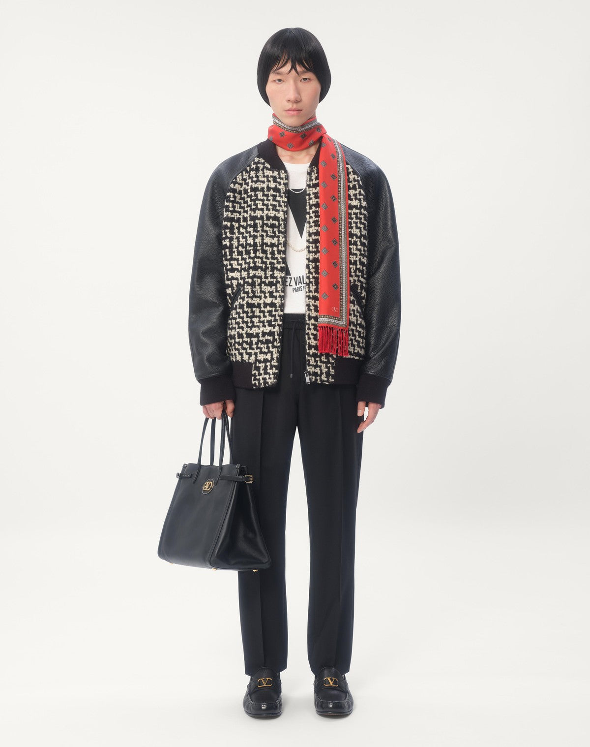 - Il modello è alto 187 cm e indossa una taglia 46.