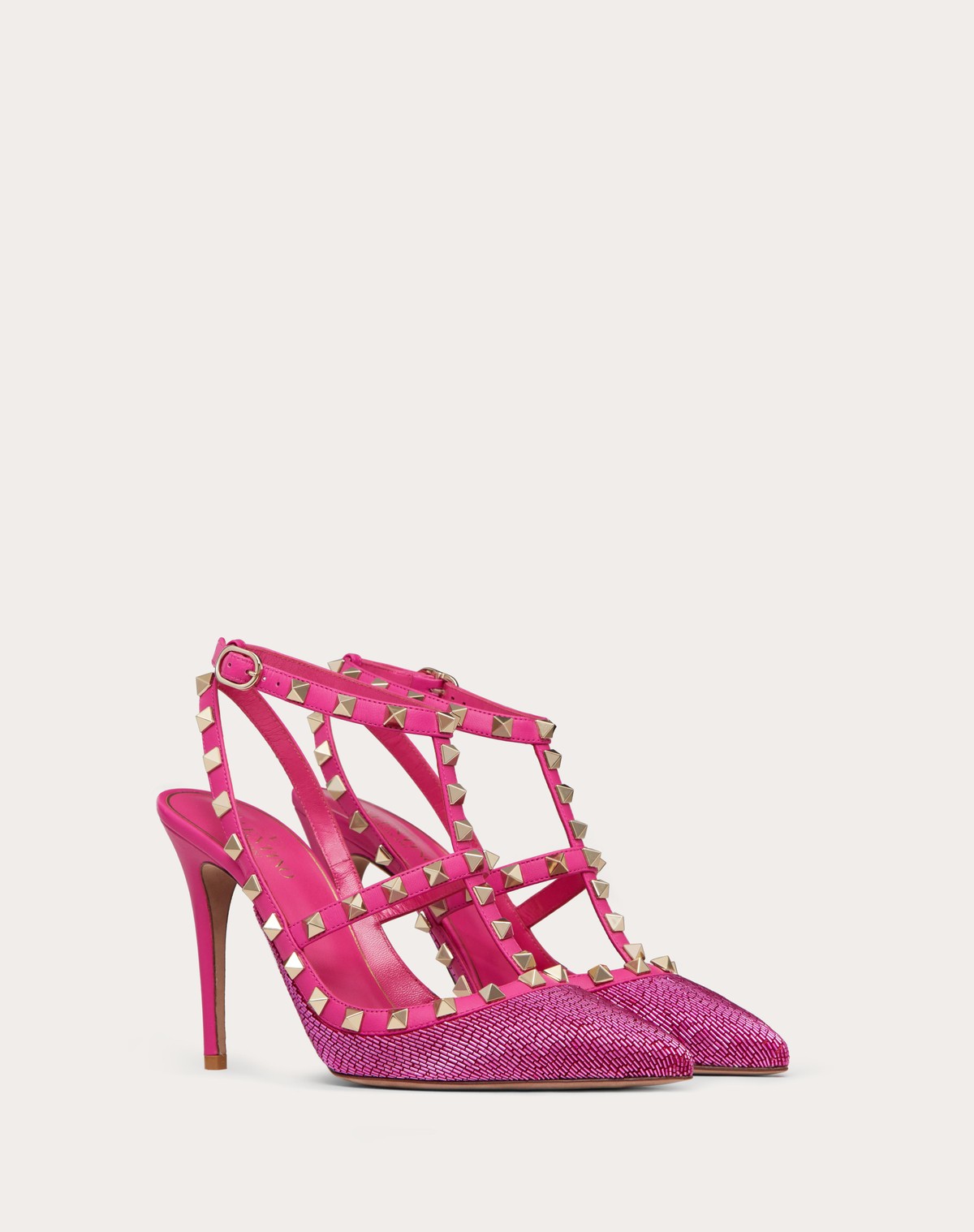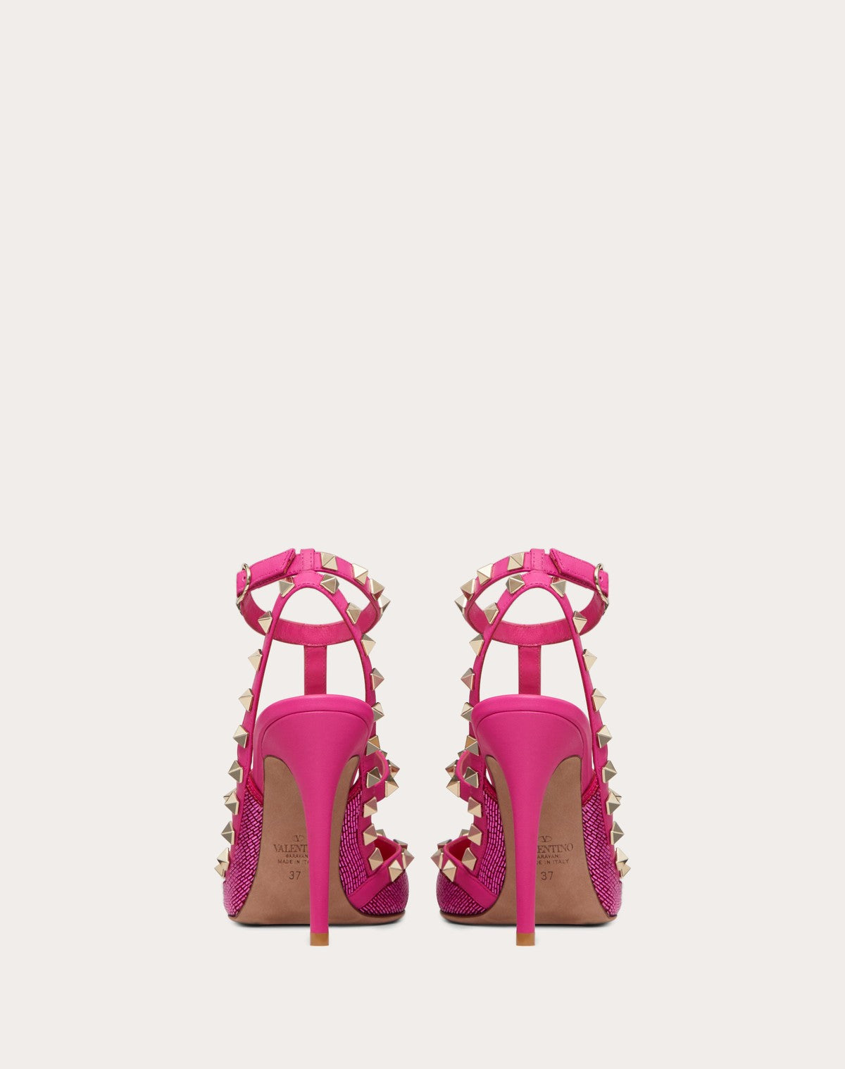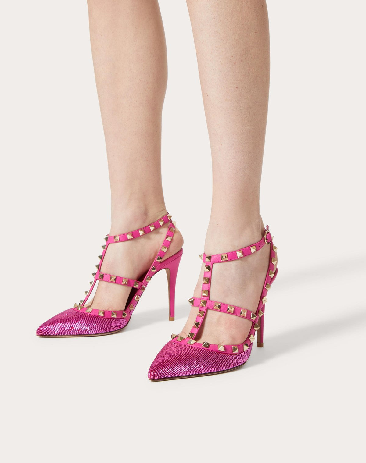 • Décolleté Rockstud In Raso Con Ricamo All Over Tubes E Cinturini 100Mm
