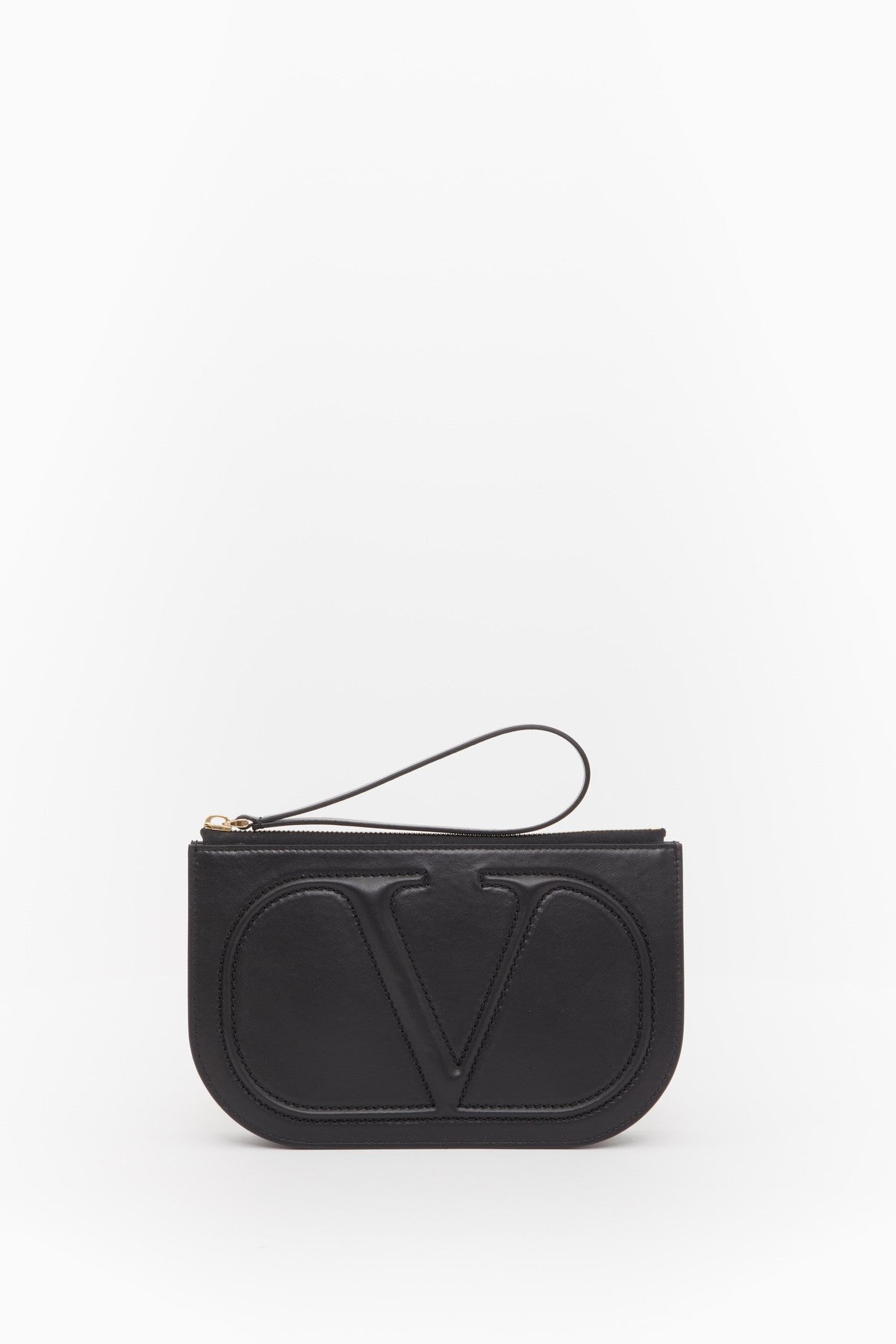 Pouch Valentino Garavani VLogo Walk in vitello con dettaglio VLogo Signature in rilievo.