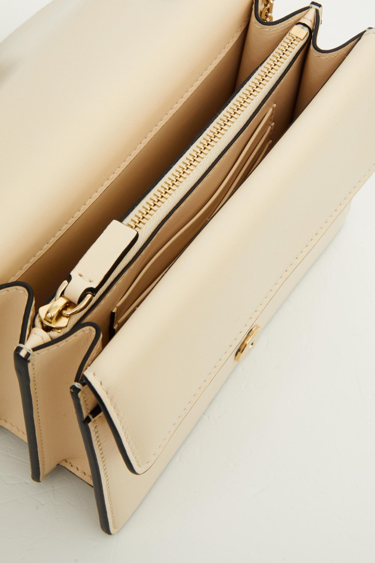 - Due scomparti divisi da una tasca centrale con cerniera e tre vani portacarte