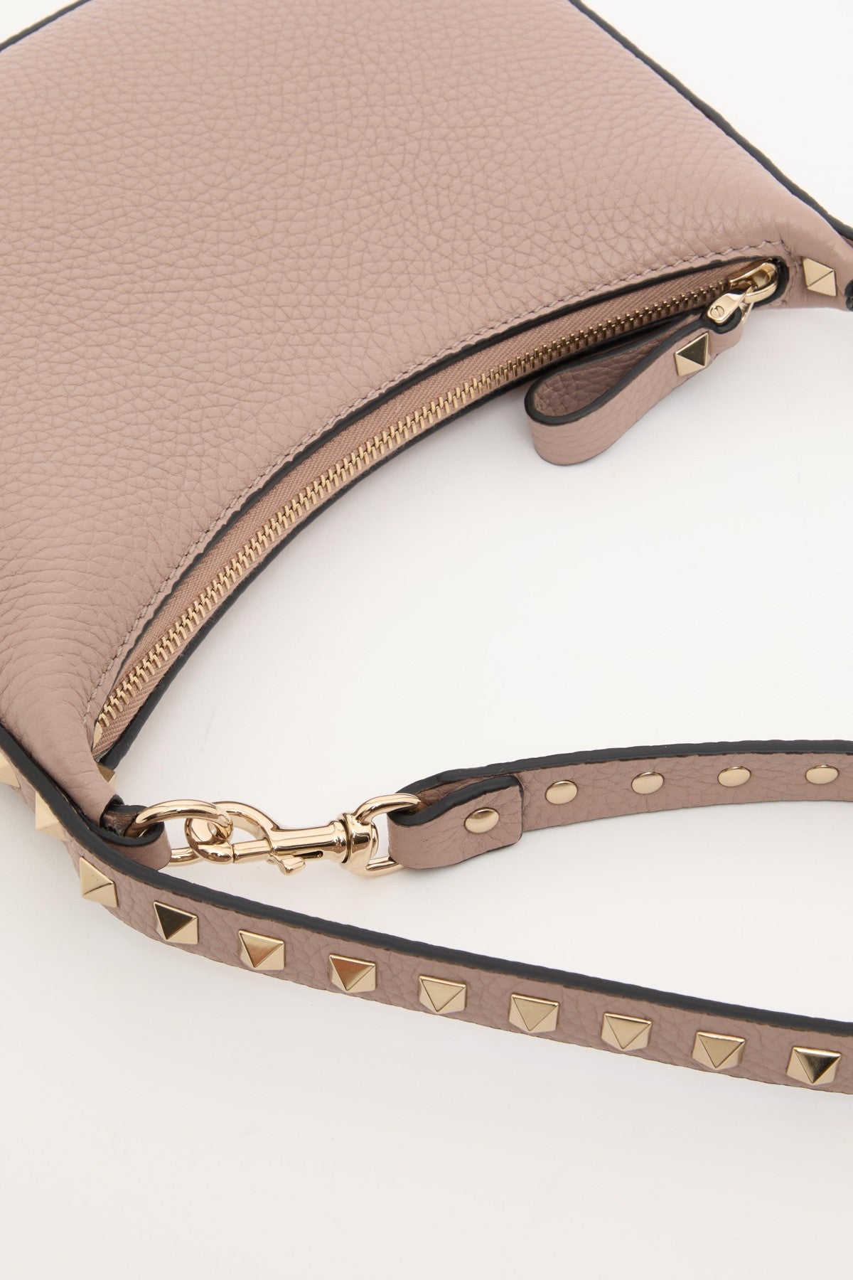 Mini hobo Rockstud Valentino Garavani in Vitello granato. La mini borsa può essere portata a mano, a spalla o al polso grazie al manico che può essere agganciato anche sull'altro lato.