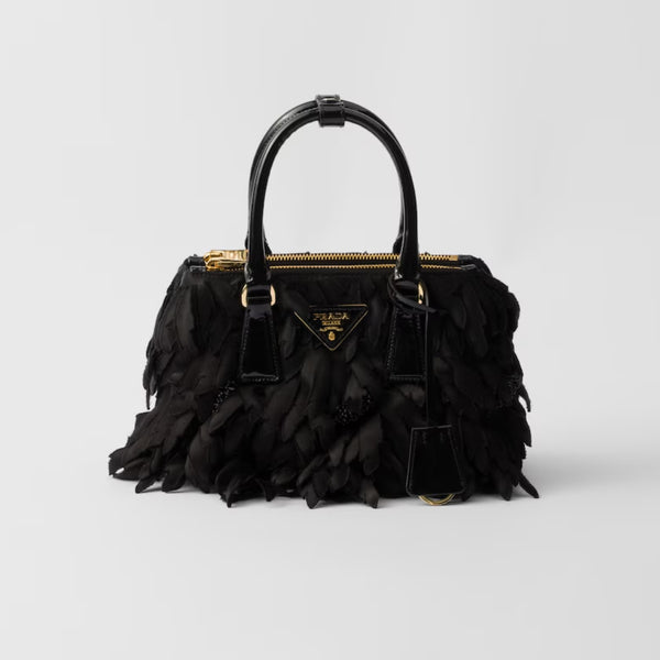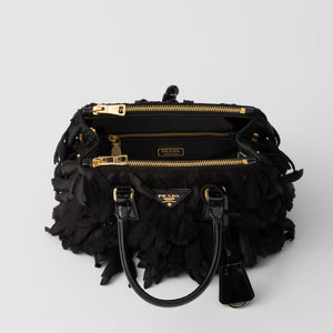 La borsa Prada Galleria è reinterpretata per la collezione Autunno/Inverno 2024 con volumi eccentrici e dettagli dall’allure retrò. La silhouette senza tempo, interamente ricoperta da petali in raso applicati a mano, è trasformata in un oggetto prezioso, un gioiello di artigianalità dall’eleganza iconica.