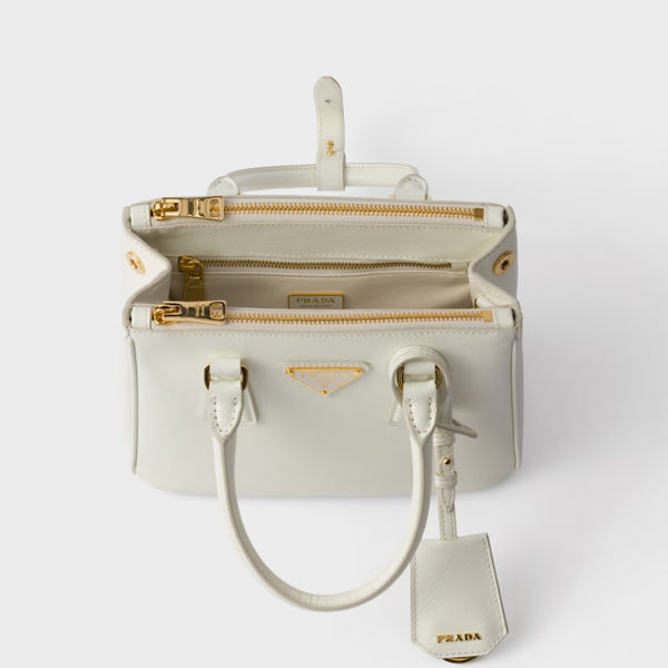 La borsa Prada Galleria è riscoperta stagione dopo stagione con nuove interpretazioni che ne esaltano la silhouette senza tempo. Presentato in versione mini, l’accessorio è impreziosito dal finish elegante della pelle Saffiano effetto vernice che dona al modello iconico un’allure sofisticata.