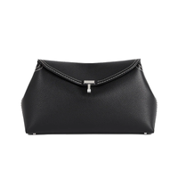 Chiamata T-Lock per la chiusura a girello in metallo argentato che chiude la patta superiore curva. Realizzata in Italia in morbida ma resistente pelle martellata, rifinita con cuciture a contrasto e piedini protettivi, si apre su un interno in microsuede beige con uno scomparto per carte in pelle. Da tenere a mano o a tracolla con la tracolla opzionale.
