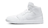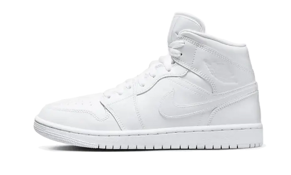 - Air Jordan 1 Mid Triple White Patent Swoosh