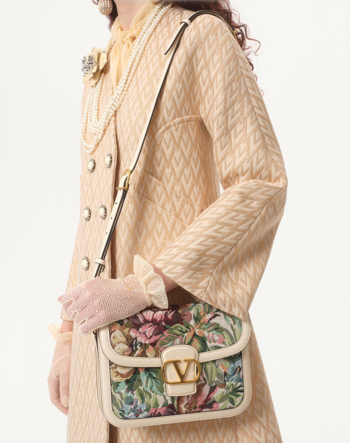- Fodera in Jacquard motivo riga diagonale con fiori e VLogo ( 75% Acetato, 25% Seta )