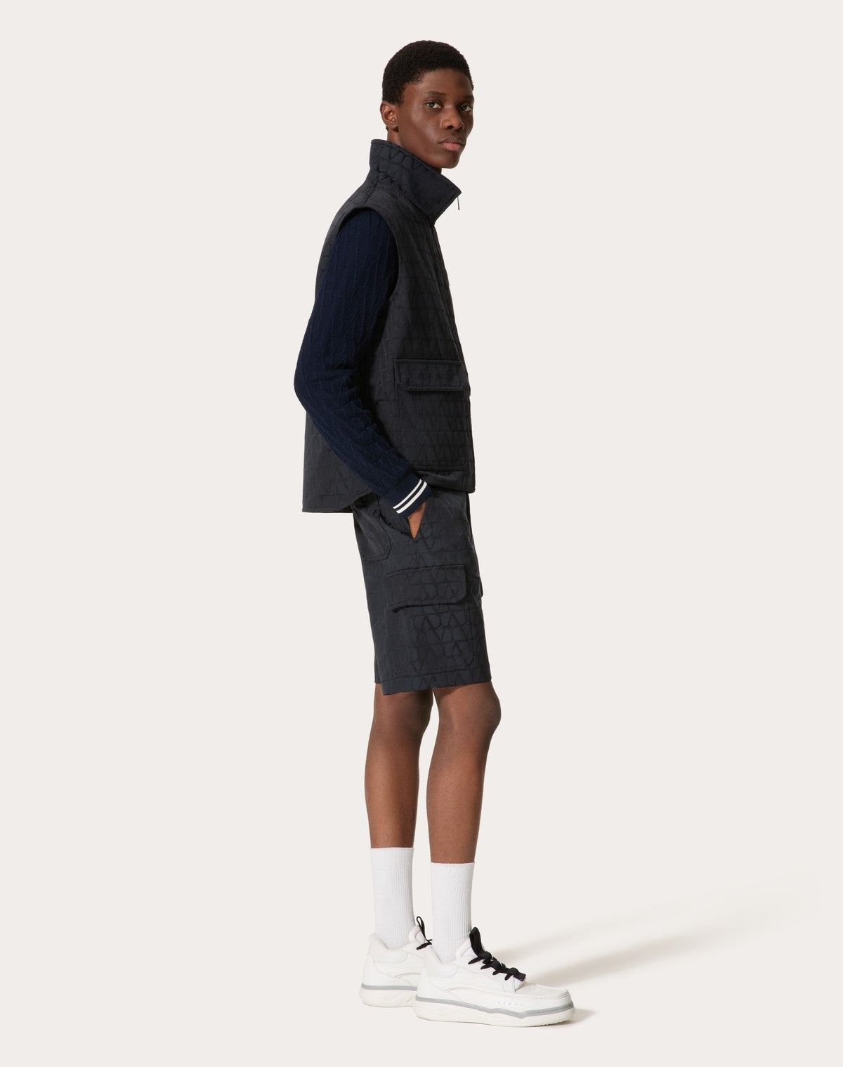 - Il modello è alto 187 cm e indossa una taglia 46 IT