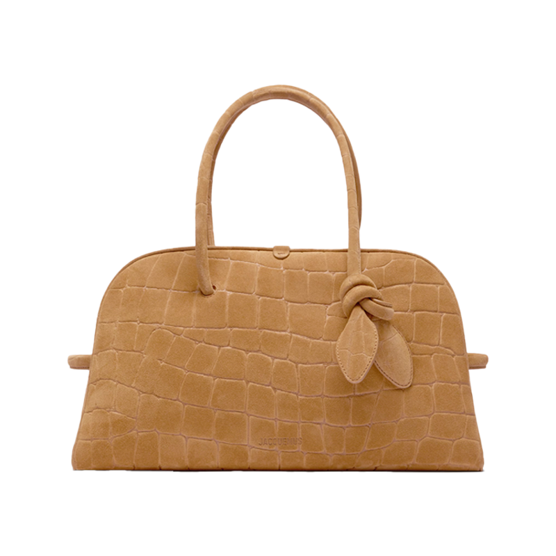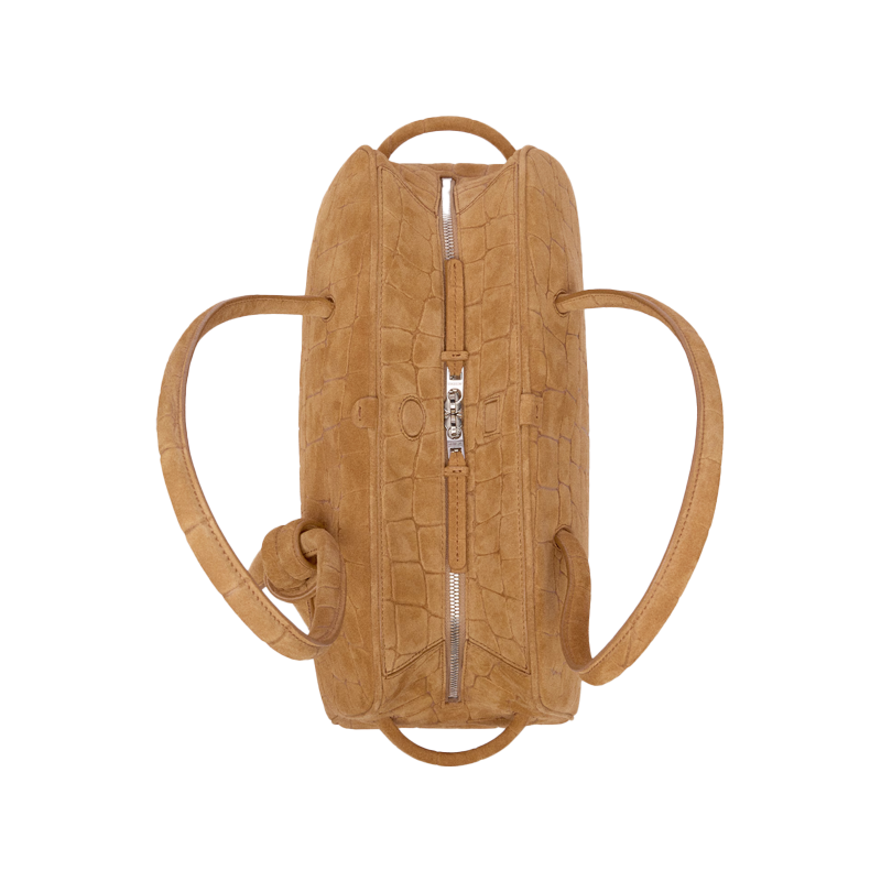 - Borsa bowling in pelle scamosciata goffrata effetto coccodrillo
