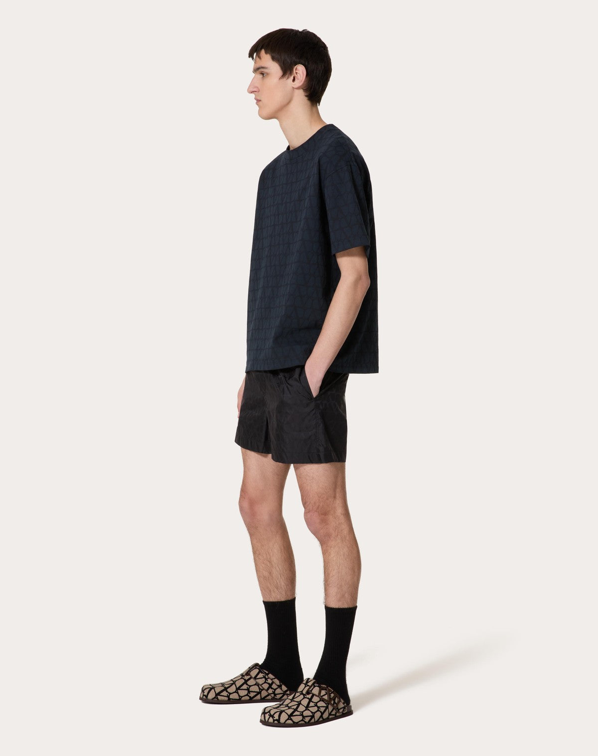- Il modello è alto 187 cm e indossa una taglia 46 IT