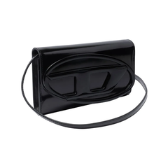 Esta maxi cartera se transforma en un minibolso abrochando la bandolera a juego. Está confeccionada en piel espejada y decorada con una placa metálica Oval D, un detalle distintivo de los icónicos bolsos 1DR.