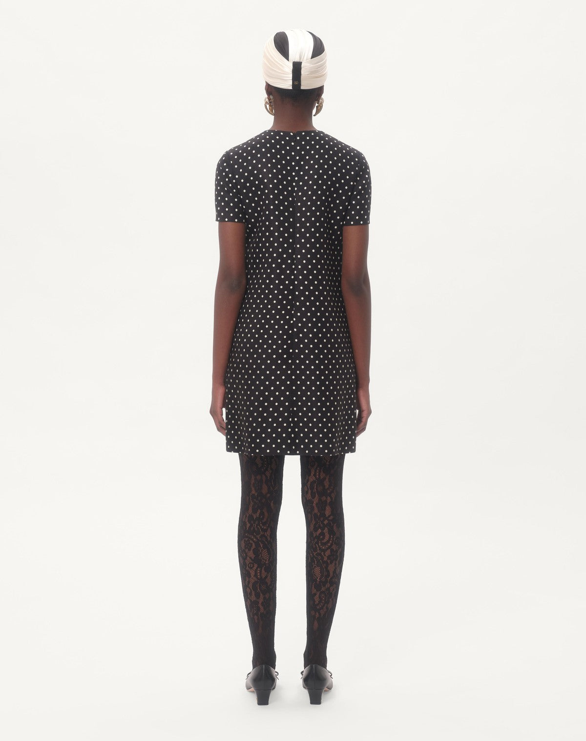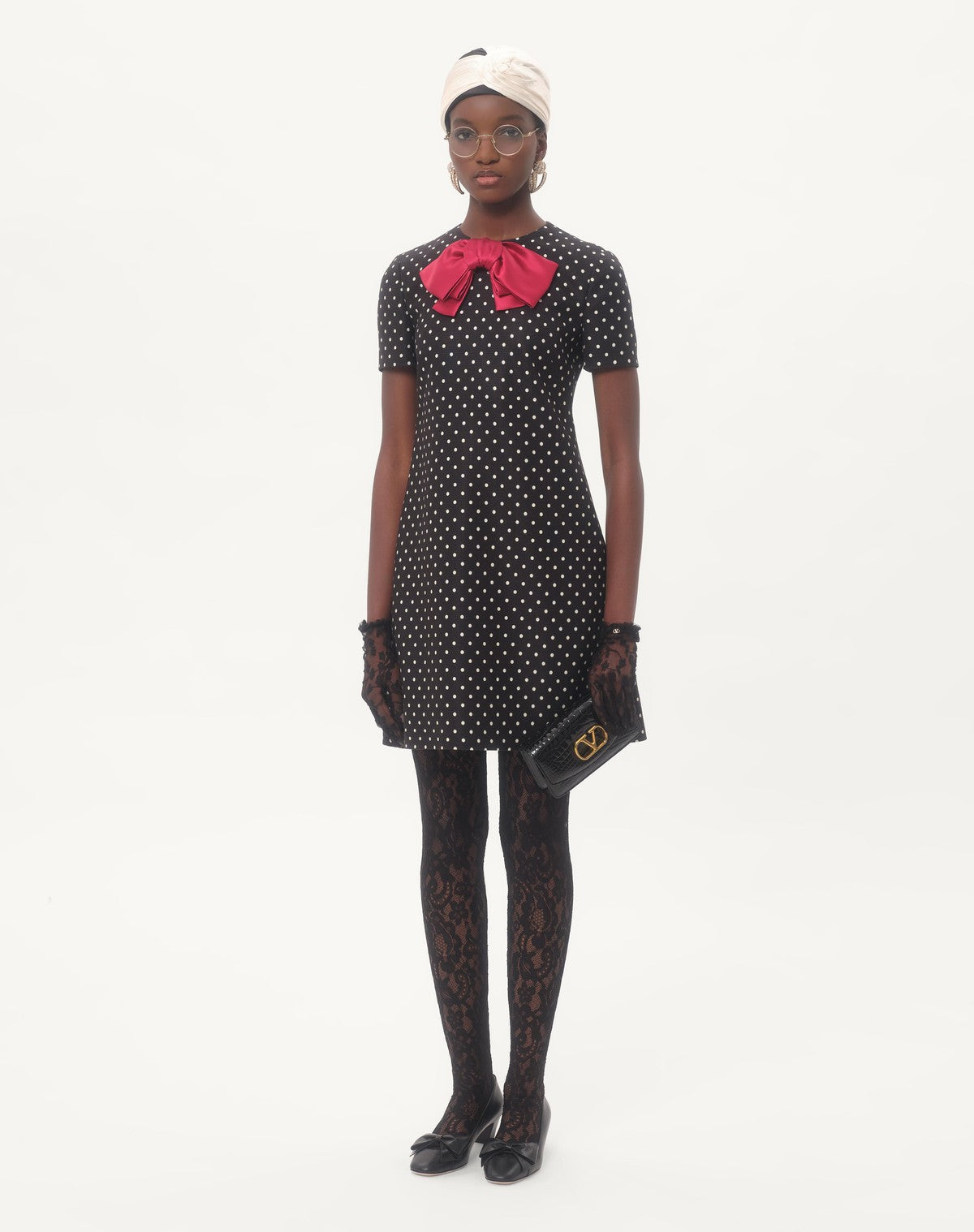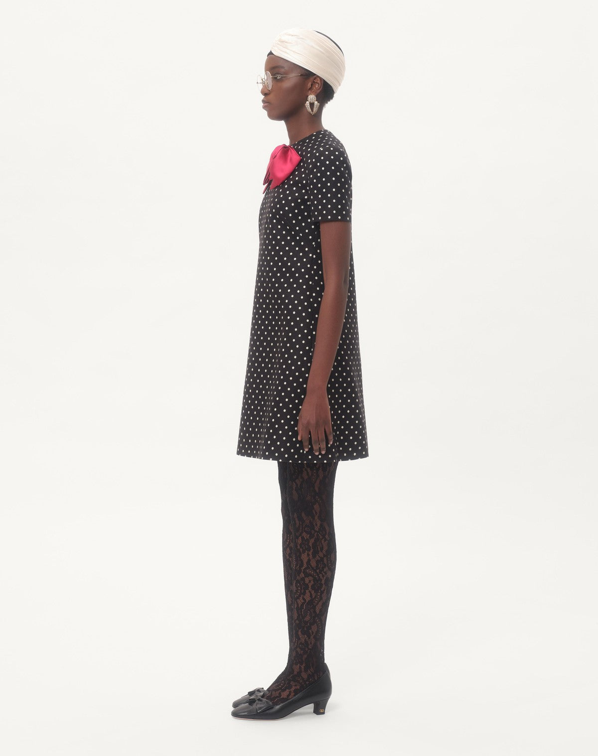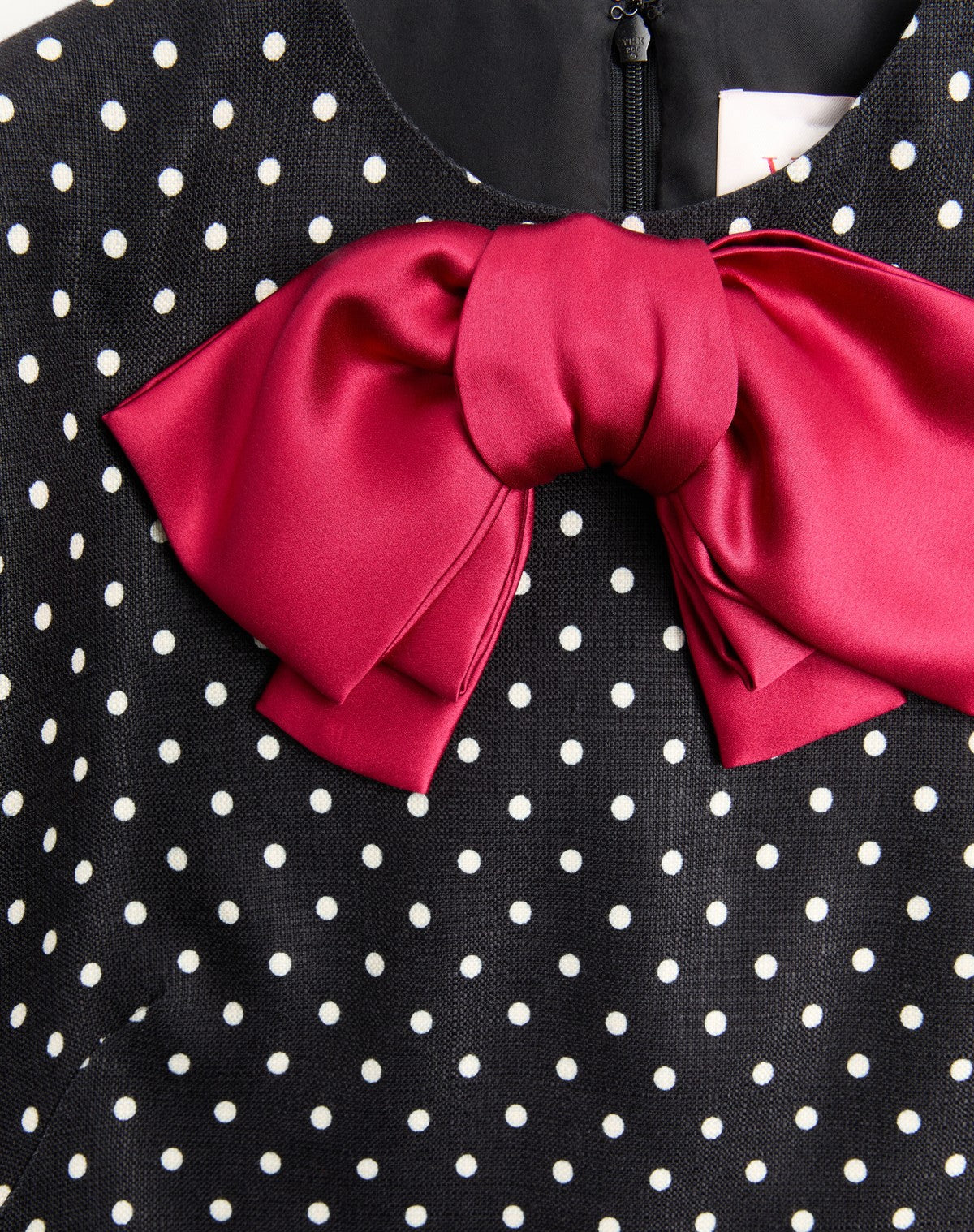Abito corto in Supergran stampa Plusdepois con fiocco in Doppia Douchesse