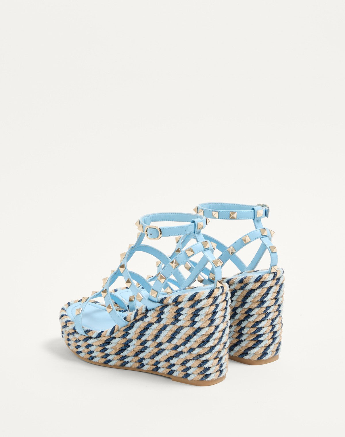 - Sandalo Zeppa Rockstud in vitello con cinturini 95mm