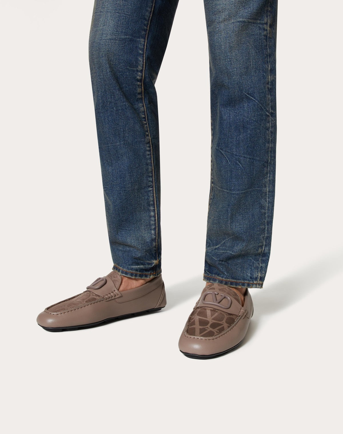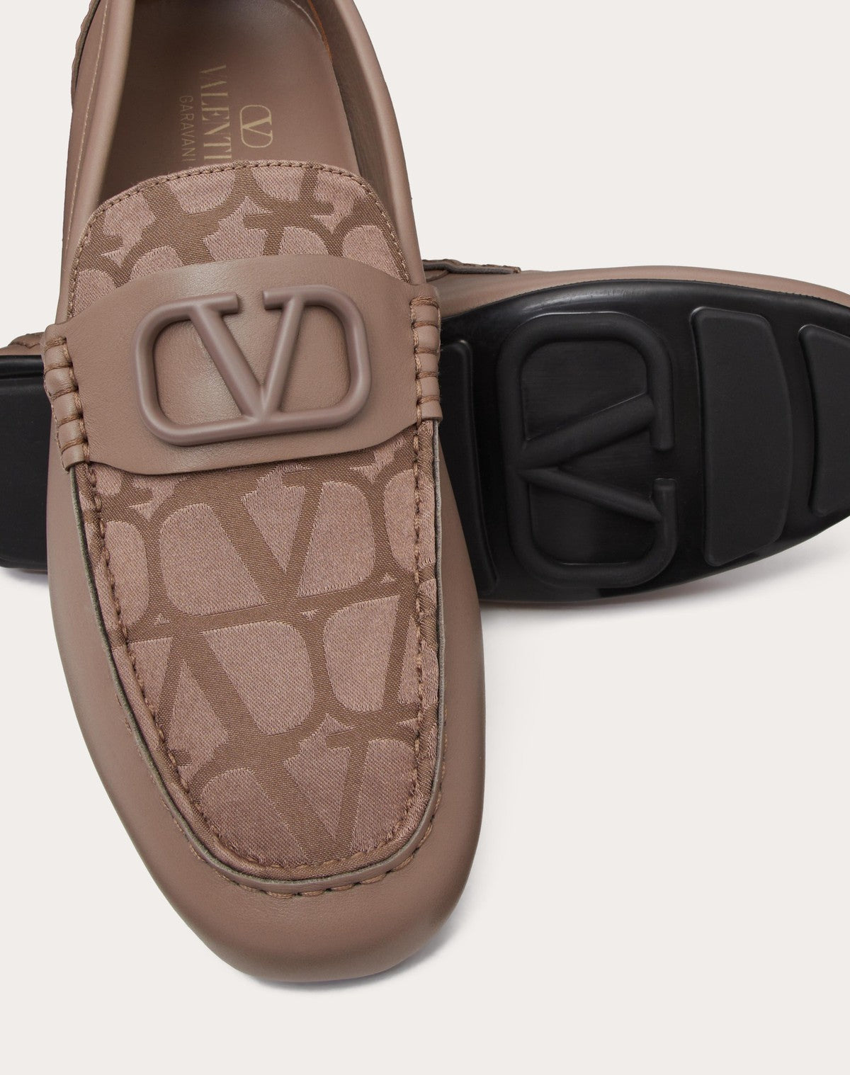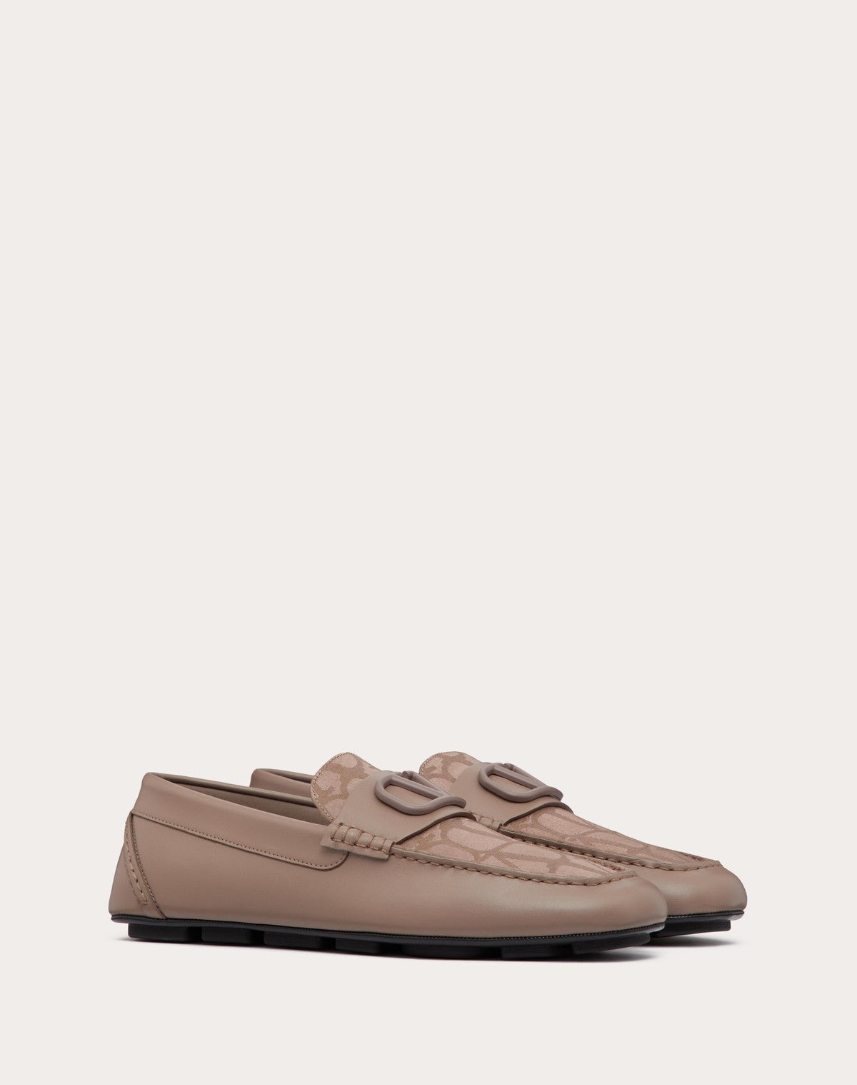 Mocassino Driver Vlogo Signature In Vitello E Tessuto Tecnico Toile Iconographe