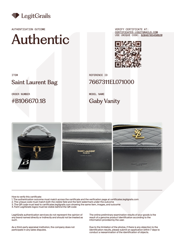 Lavoriamo esclusivamente con fornitori verificati nel settore del lusso. Ogni pezzo viene selezionato con cura prima di entrare nel nostro catalogo e può essere verificato in qualsiasi momento tramite LegitGrails, il servizio di autenticazione di riferimento in Europa.