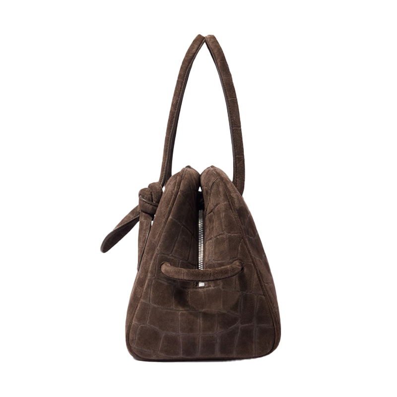 - Borsa bowling in pelle scamosciata goffrata effetto coccodrillo
