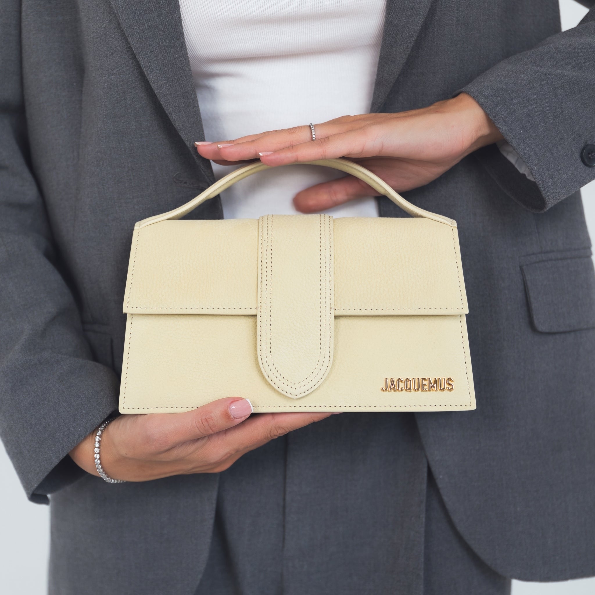 Ogni pelle è unica e sono stati accuratamente selezionati dal team di Jacquemus. Le sue irregolarità e variazioni di colore sono naturali. Per preservare lo stato originale del pezzo si consiglia di tenerlo al riparo dal sole e lontano da cosmetici, acqua e fonti di calore. Può essere conservato nella sua custodia in un luogo asciutto.