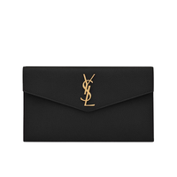 Pochette Envelope piccola con patta caratterizzata da iniziali YSL in metallo.