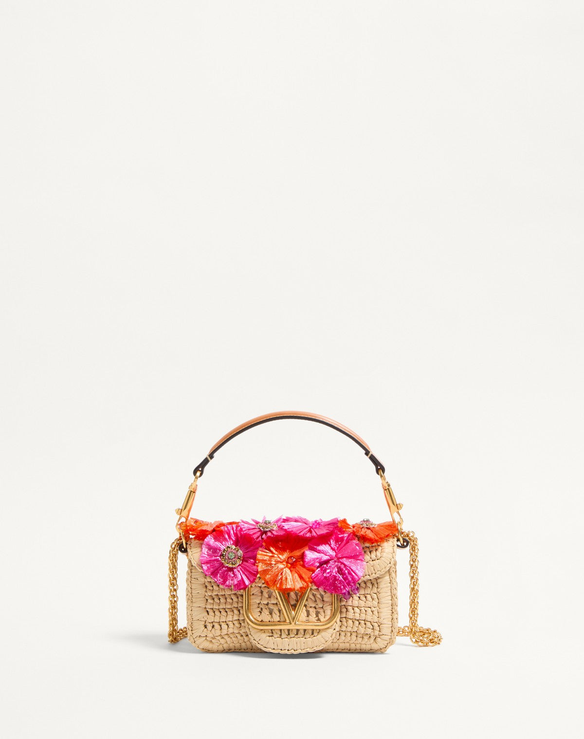 - Borsa Piccola A Spalla Valentino Garavani Locò In Rafia Con Fiori E Perline