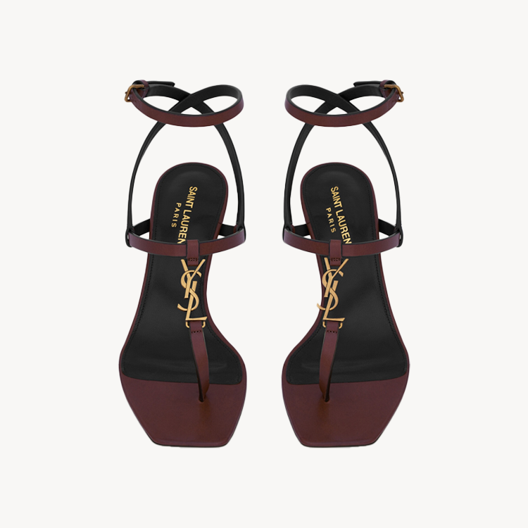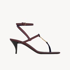 Sandali multi-cinturino con punta quadrata e tacco a spillo avanzato, caratterizzati da una cassiera in metallo sul davanti e cinturino regolabile alla caviglia.