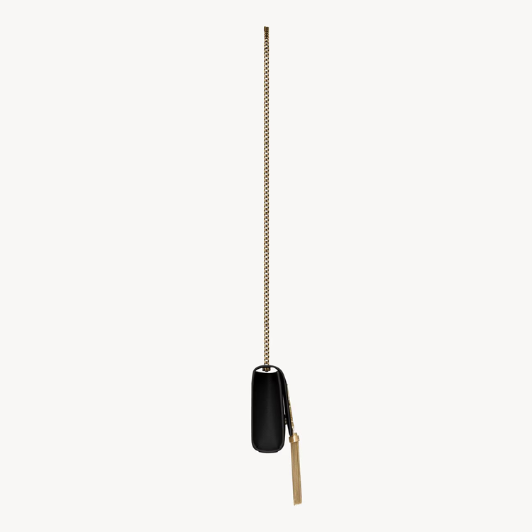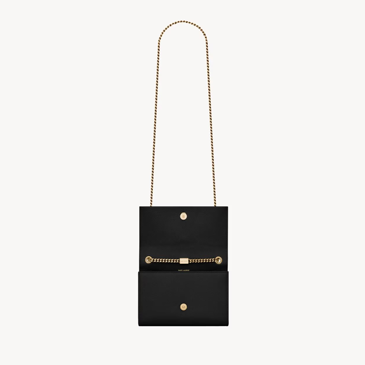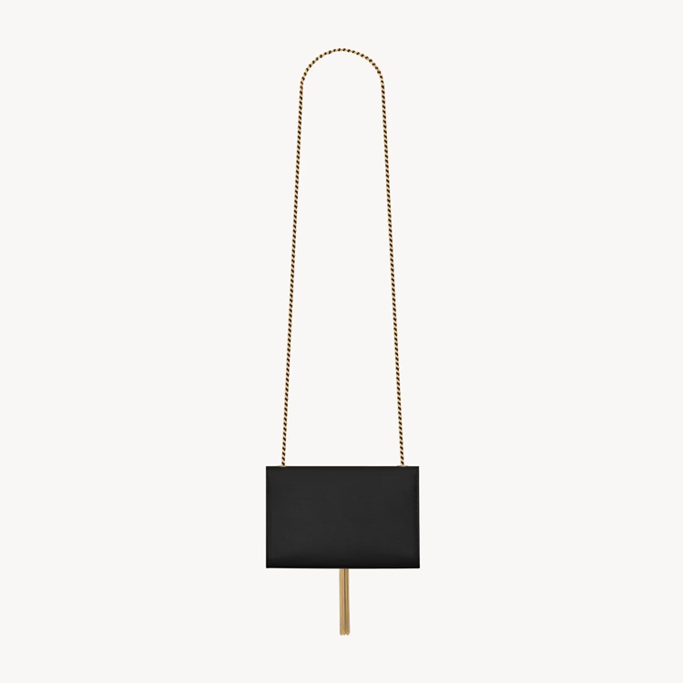 L’iconica borsa Kate in pelle goffrata grain de poudre è ornata con Cassandre e gioiello pompon.